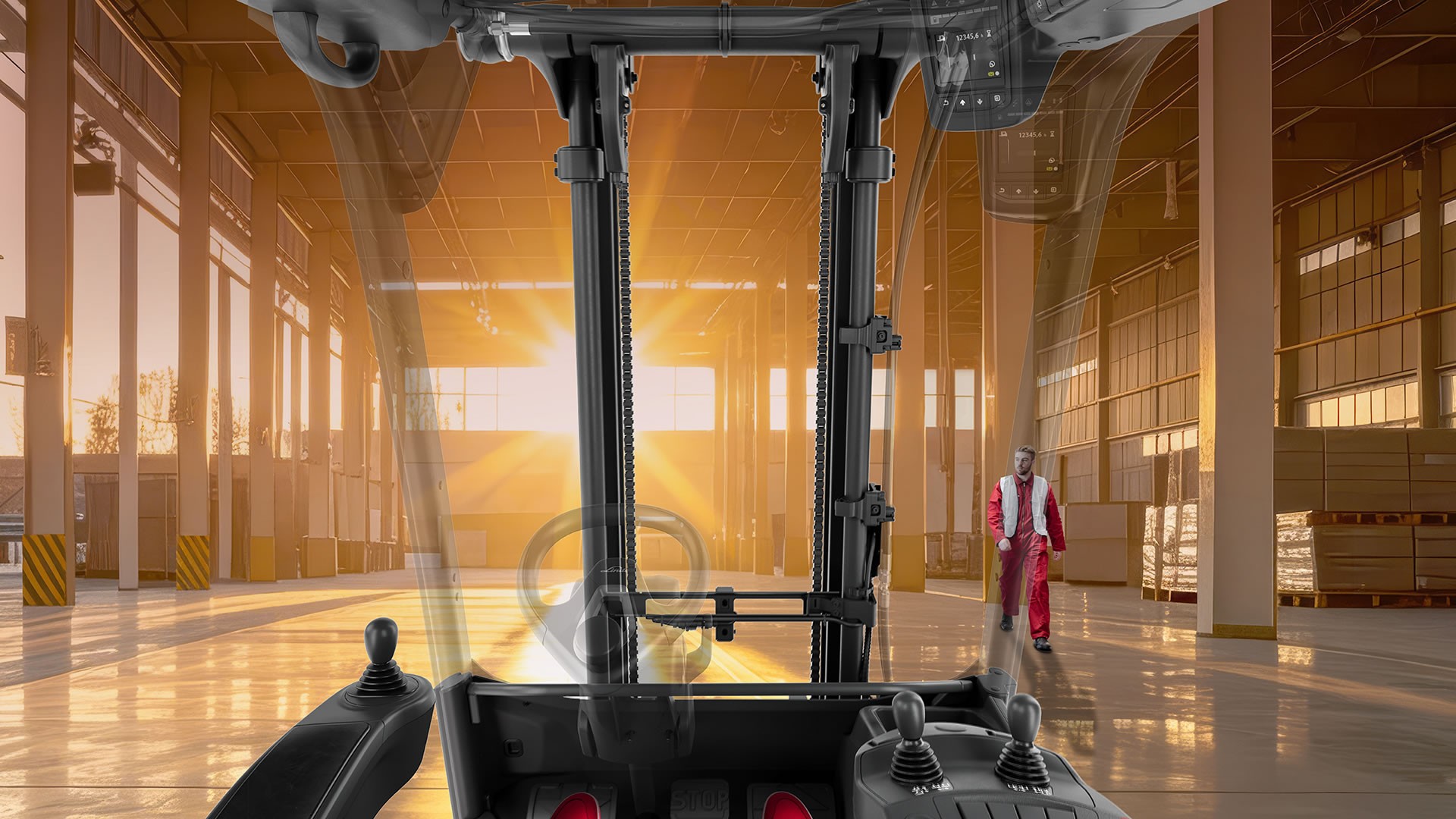Une visibilité panoramique sur la charge et l’environnement rendue possible par le retrait des montants avant (le toit de la cabine est relié au mât directement au-dessus du vérin d'inclinaison) et des profils affinés sur les montants à l’arrière. Augmentation de la hauteur sous le toit, pour les manœuvres avant et arrière.